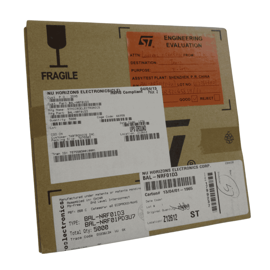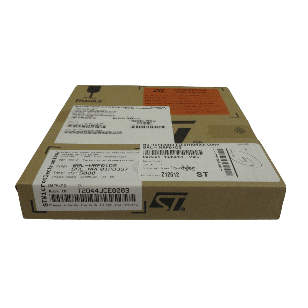 The BAL-NRF01D3 semiconductor by STMicroelectronics is a high-performance RF matching network component designed for wireless communication systems, particularly those utilizing Nordic nRF series chipsets. These components are essential for optimizing signal transmission and reception by matching impedance between the RF transceiver and antenna, improving overall efficiency and range.